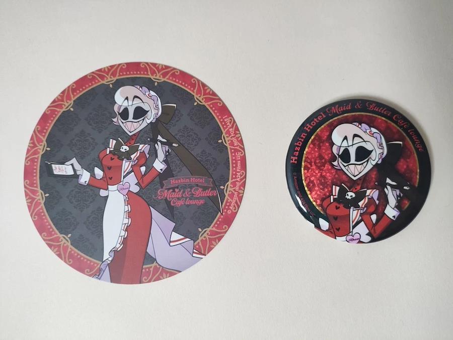 Hazbin Hotel Rosie Maid Ver. Set – Can Badge & Coaster – Japan Animate Cafe Exclusive✨ Item DescriptionThis is a Japan-exclusive Animate Cafe collaboration item from the popular series Hazbin Hotel.It features Rosie in an adorable Maid-style outfit, designed specially for this limited collaboration event in Japan.