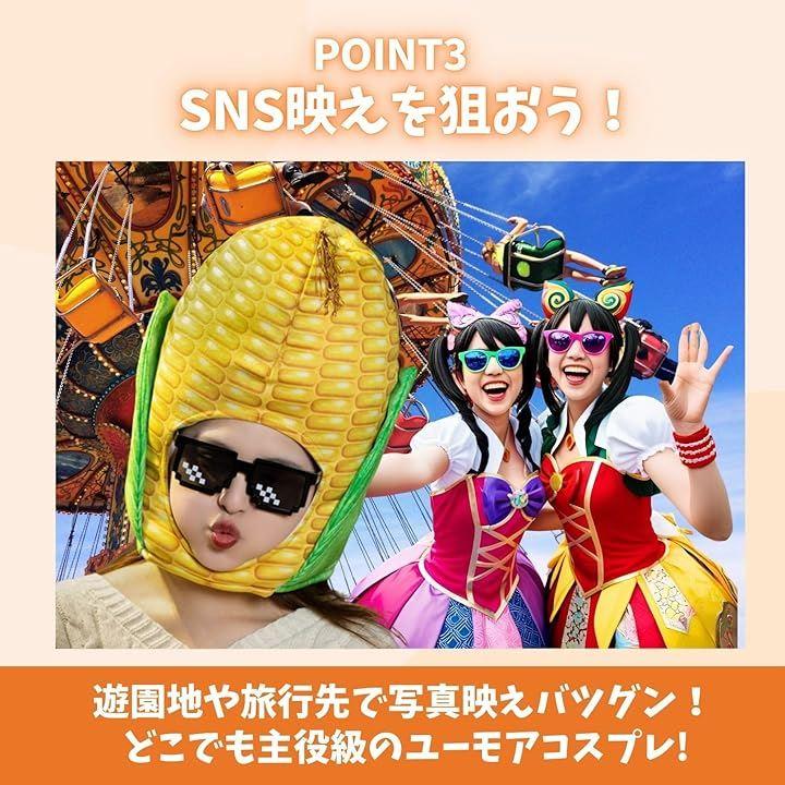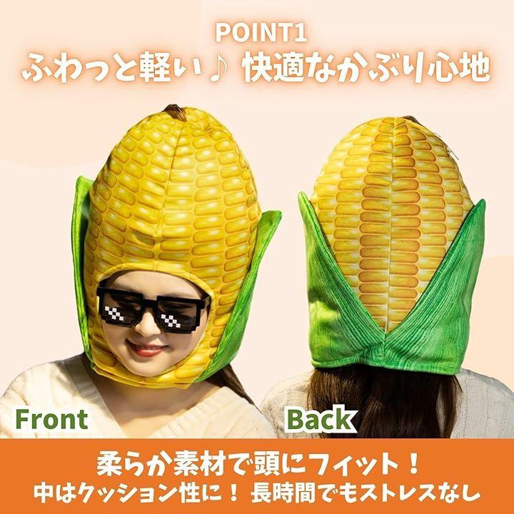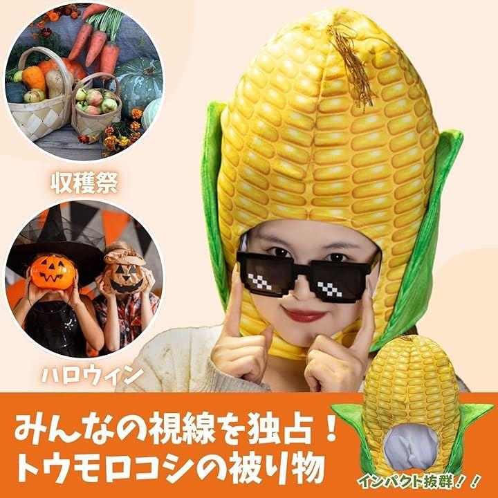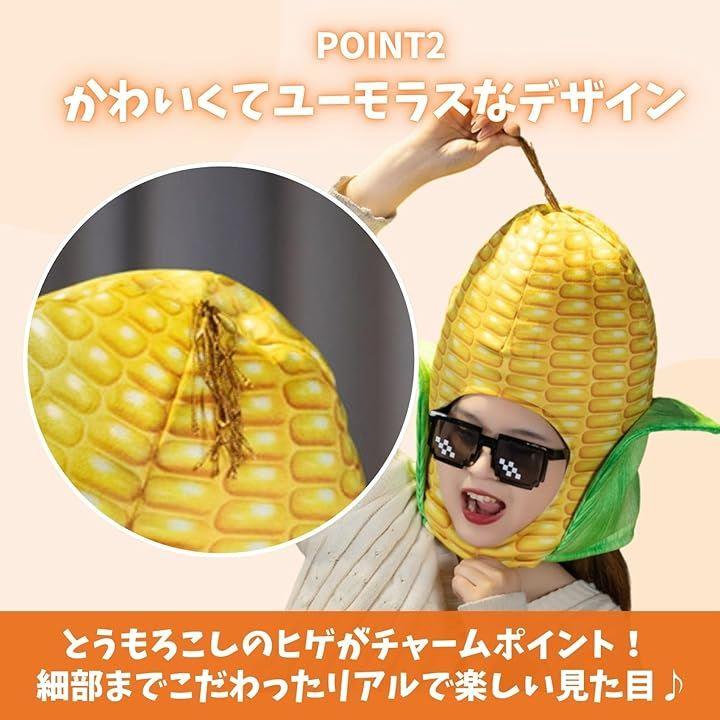 ユニークなトウモロコシデザインが目を引く被り物は、誕生日会やハロウィン、忘年会など特別なシーンでも注目の的に。