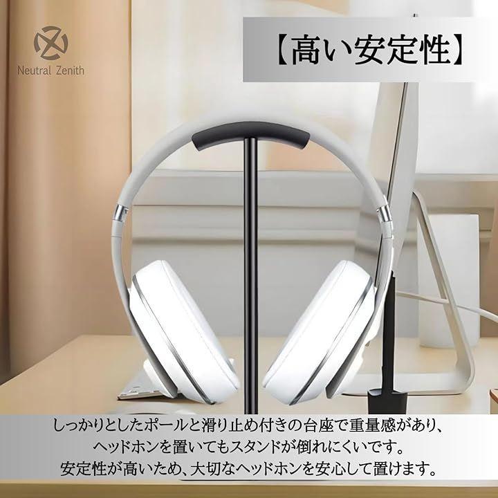 「高い安定性」しっかりとしたポールと滑り止め付きの台座で重量感があり、ヘッドホンを置いてもスタンドが倒れにくいです。