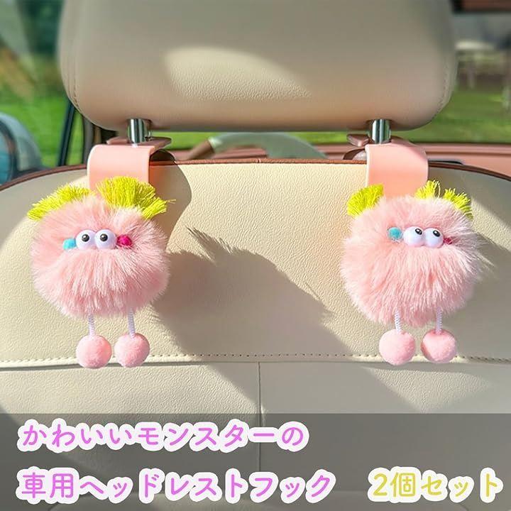 車のヘッドレストに簡単に取り付けられる可愛いモンスターの荷物フックセット2個セットです。
