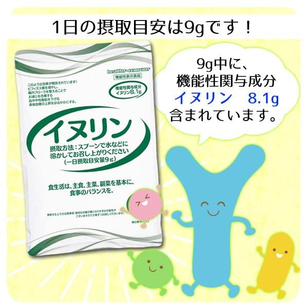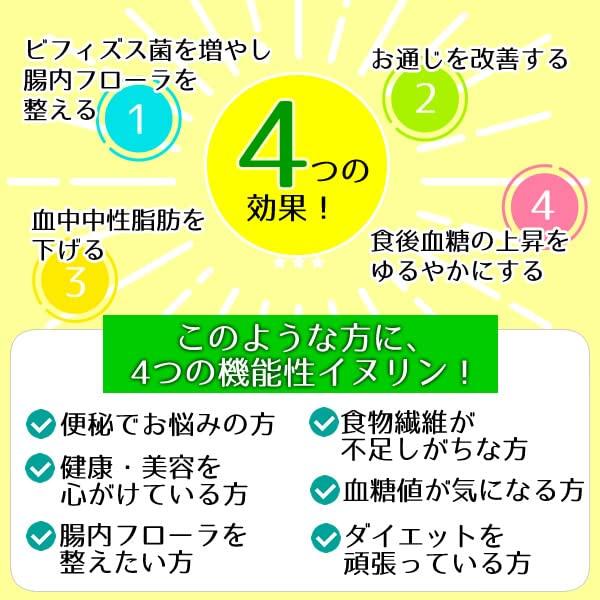 機能性表示食品対応のイヌリン500gに変更させて頂きました。ご了承くださいませ。 【内容量】500g【原材料名】水溶性食物繊維(イヌリン) [生産国:タイ、最終加工地:日本] 使いやすい水溶性の食物繊維(食物繊維含有量92.9%)で、味はやや甘く、風味のほんんどない白色の粉末です。 なお、極まれに製造工程上で、イヌリンが糖褐変した茶褐色の粉末が混じることがございますが、品質等には問題ございません。 【栄養成分表示(100gあたり)】 エネルギー:200kcal、たんぱく質:0g、脂質:0g、糖質:3.5g、食物繊維:92.9g、食塩相当量:0g、灰分:0g ※国内大手メーカーさんの生産移管に伴いまして、タイの工場での生産となりました。最終小分け加工は国内です。