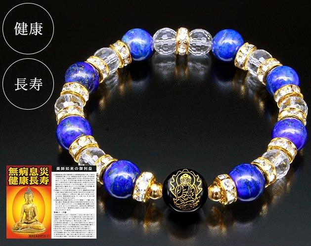 ★薬師如来と護符石のブレスレット!*病気を平癒し、心身の健康を守る薬師如来の功徳と、古来より強力な邪気祓い石として用いられてきたラピスラズリのブレスレット。