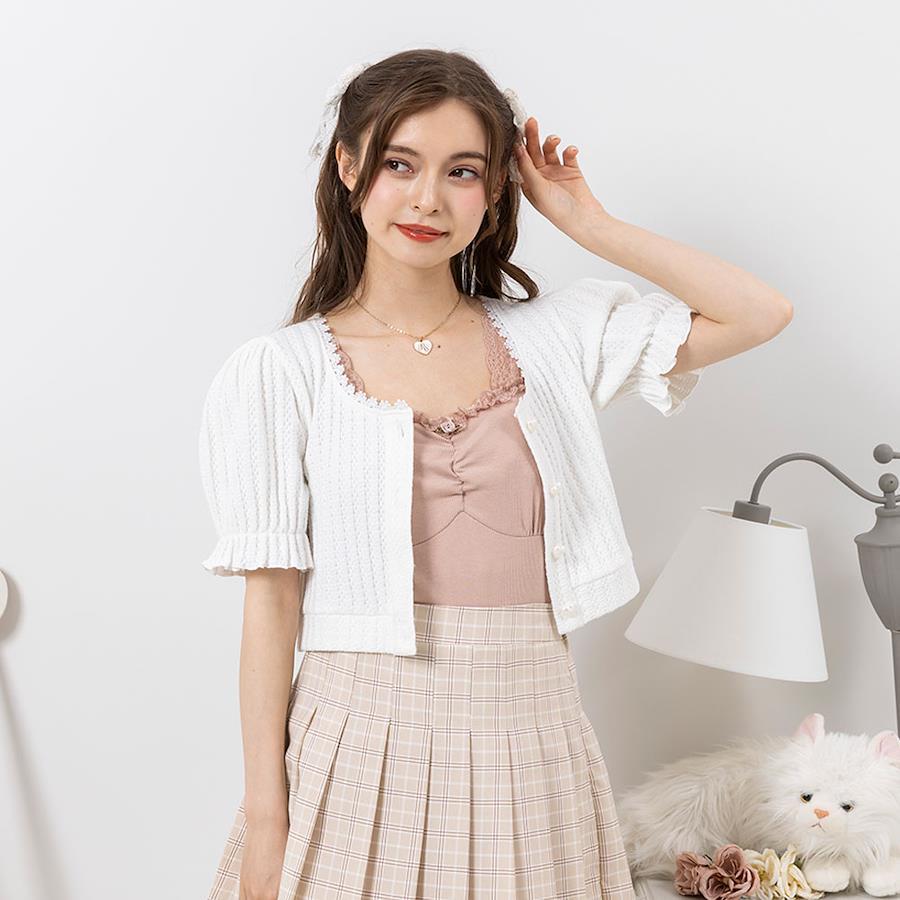 ハートボタンが可愛いポイントのショート丈カーディガントップスです♪