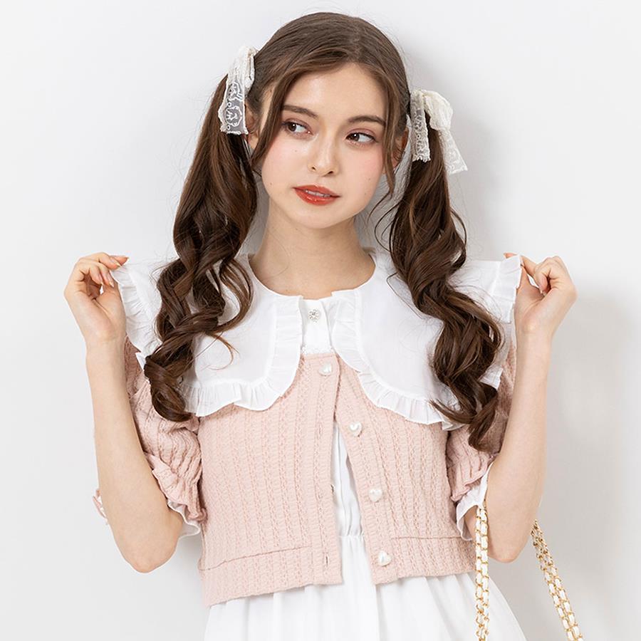 まるでお菓子みたいな豊富なカラバリが可愛いハートボタンショートカーディガンのご紹介。