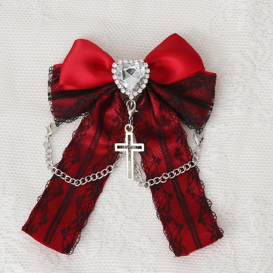 レースが重なったリボンに、キラキラのハートビジューがポイント♪