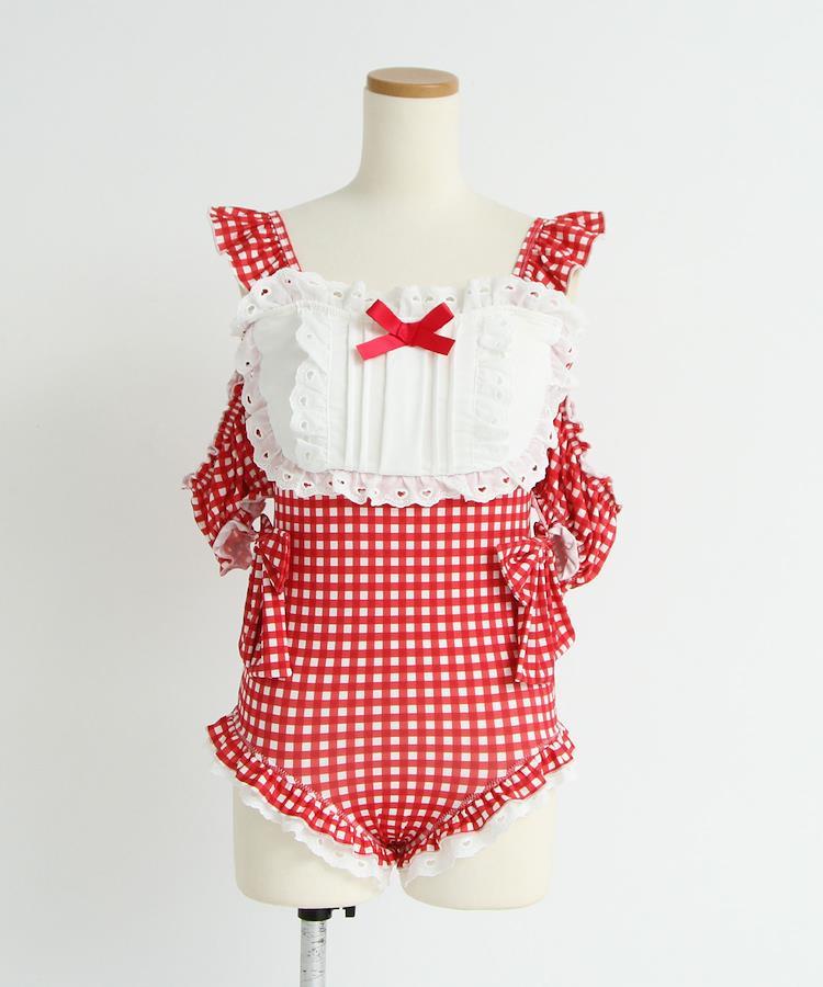 ハートフリルレースたっぷりのかわいいヨークデザインの水着です♪
