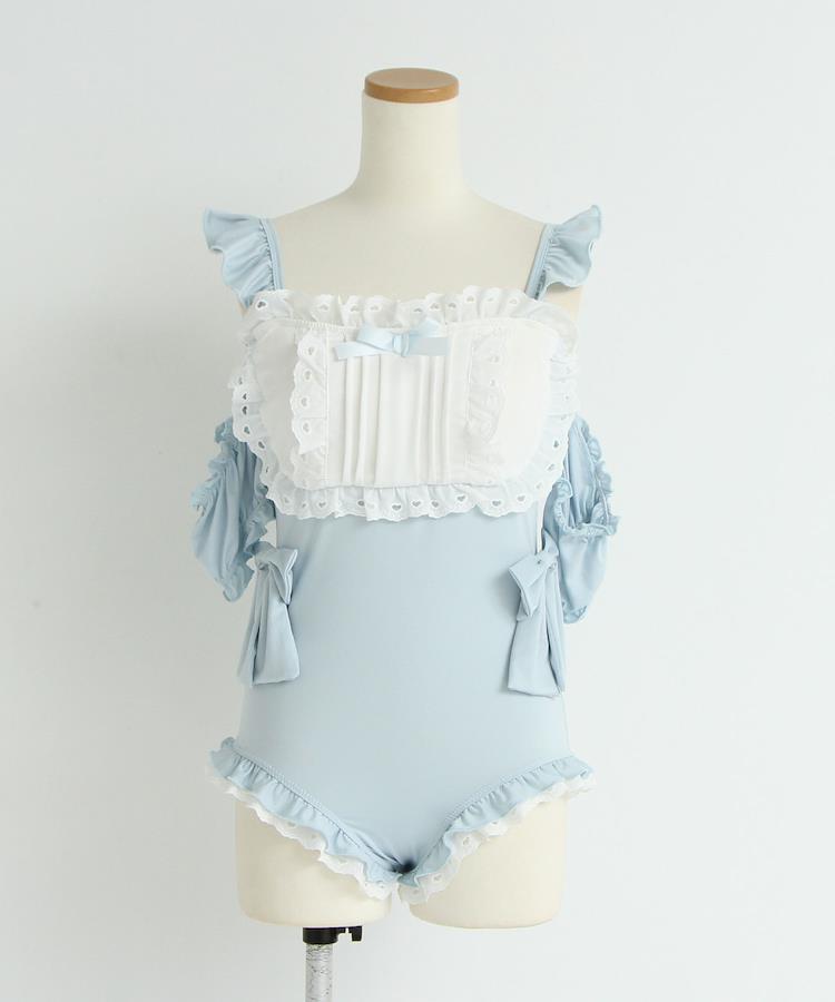 ハートフリルレースたっぷりのかわいいヨークデザインの水着です♪