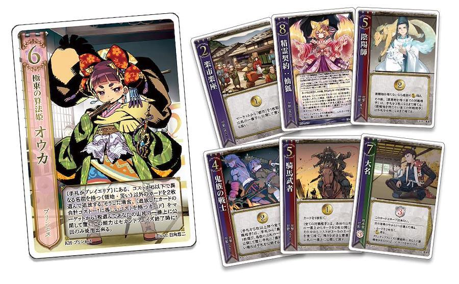 製品名:ハートオブクラウン第二版~極東辺境領~ ジャンル:デッキ成長型カードゲーム プレイ人数:2~4人 プレイ時間:20~40分 対象年齢:12歳以上 内容:カード144枚+説明書 1冊