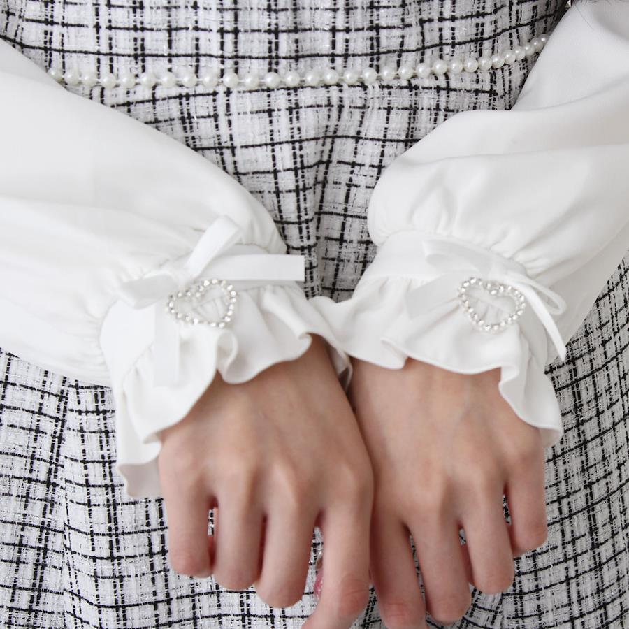 きらきら輝くハートパールビジューボタンや大きめのパールバックル付きリボンなど可愛さたっぷり♪