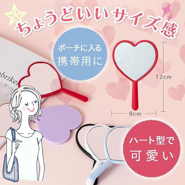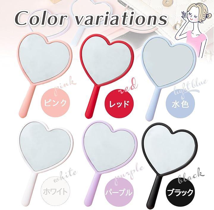 デザイン性: ハート型のかわいいコンパクトミラーで、ホワイト、ピンク、ブルー、パープル、ブラック、レッドの6色展開