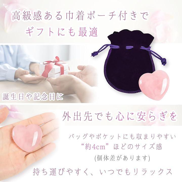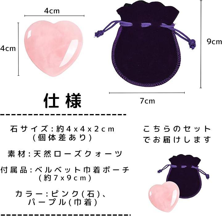 「仕様」 石サイズ:約3~4cm(個体差あり) 素材:天然ローズクォーツ 付属品:紫色ベルベット巾着ポーチ(約9x7cm) カラー:ピンク(石)、パープル(巾着) 用途:癒しグッズ、置物、ギフト、お守り