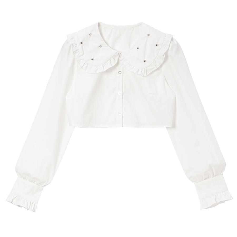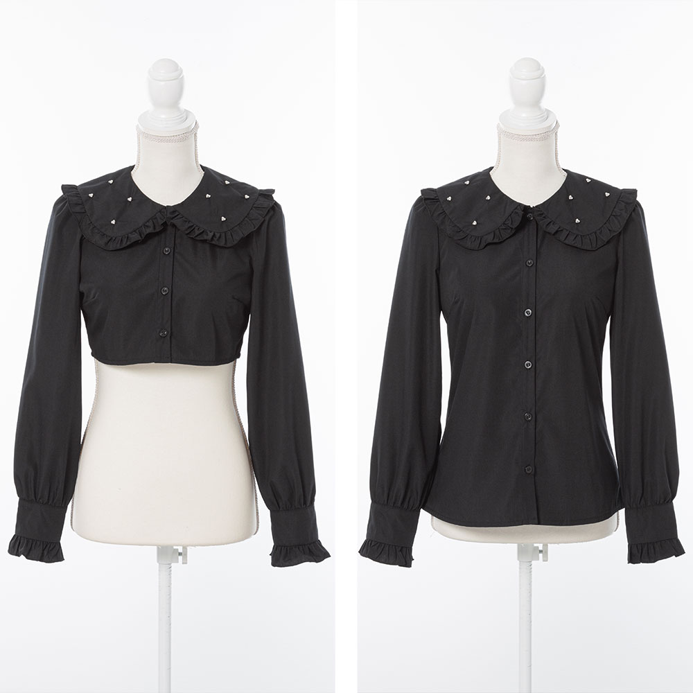 甘辛な選べる丈ブラウスのご紹介。【デザイン】シンプルでとっても使いやすいデザインの一着です!襟のスタッズがキラっと輝いて後ろ姿もかわいい?コーディネートによって甘めにも辛めにもできる万能アイテムなので一枚あると超便利♪ショート丈とレギュラー丈をお好みでお選びいただけます。【素材】さらっとしたシャツ素材で、ロングシーズン着用いただけます。白色は透ける場合があるため淡色インナーの着用をお勧めします。【コーディネート】レギュラー丈はキャミワンピのインナーや定番ガーリースタイルにおすすめ?オーバーサイズのスウェットなどの重ね着で襟を見せる着こなしも試してみてほしいです♪ショート丈は着るだけでスタイル盛れ効果があります!ハイウエストのボトムやキャミワンピの上から羽織ることでいつもと違う着こなしに...?《透け感》カラーによってあり 《生地の厚さ》普通 《裏地》なし 《伸縮性》なし《生産国》中国