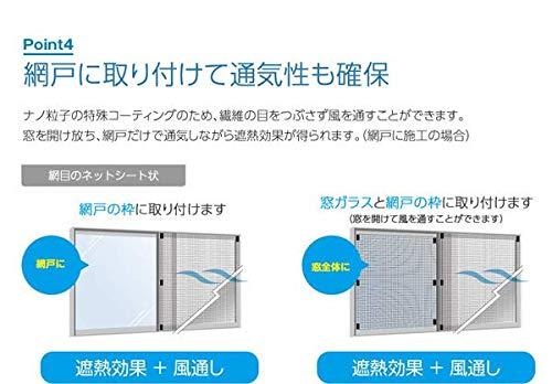 ナノ粒子の特殊コーディングのため、繊維の目をつぶさず風邪を通すことができます。窓を開け放ち、網戸だけで通気しながら遮熱効果が得られます。(網戸に施工の場合)