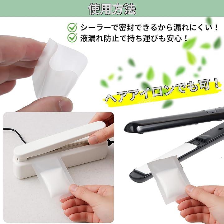 Heat-sealed pouches, 100-count, disposable, travel-friendly, perfect for toner, shampoo, liquids, hair irons, and more.