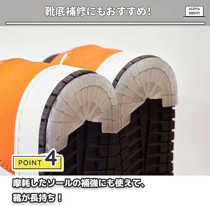 「補修・補強にも役立つ。」摩耗した靴底に貼れば補強にもなり、履き慣れた靴をもう少し長く使いたい時にピッタリ。