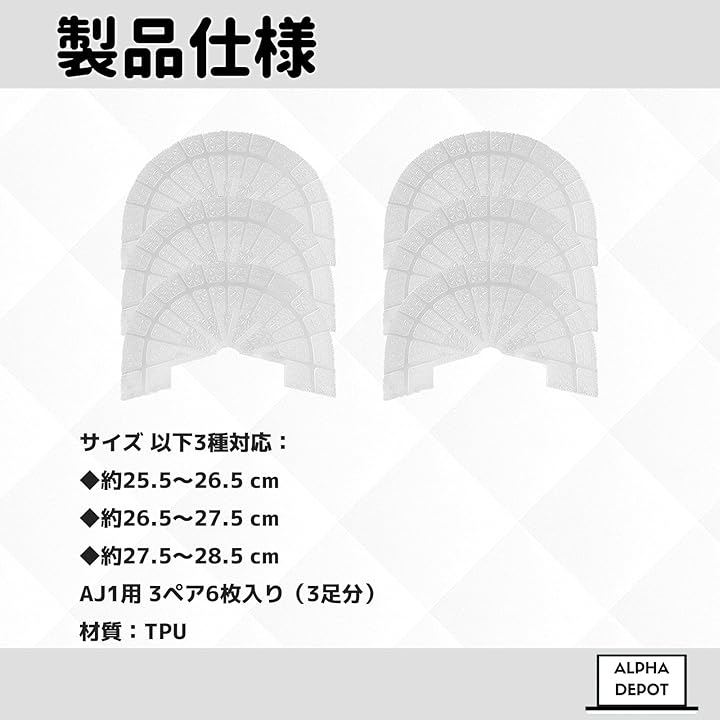 Heel protector, sole protector, heel repair patch, shoe sole guard, wear prevention, anti-slip, for AJ1, 3 pairs (6 pieces)