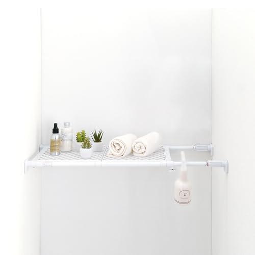 【サイズ】幅73-112×高5.5×奥行32cm(棚部奥行30.0cm) 【取付幅】73~112cm 【耐荷重】73cm時50kgまで/112cm時30kgまで【本体重量】1kg【カラー】ホワイト 【材質】〈パイプ〉鉄・エポキシ樹脂粉体塗装 〈樹脂部分〉ABS樹脂・合成ゴム 〈ねじ類〉鉄・メッキ ねじ・クギ不要。強力ジャッキで圧着固定。 小物を載せるのに便利。強力タイプでワイドな突っ張り棚です。 (#lf)(#lf)(#lf)商品購入前に、ストア紹介ページをご確認ください。