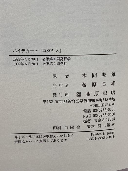 商品名:ハイデガーとユダヤ人 藤原書店 ジャン・フランソワ リオタール