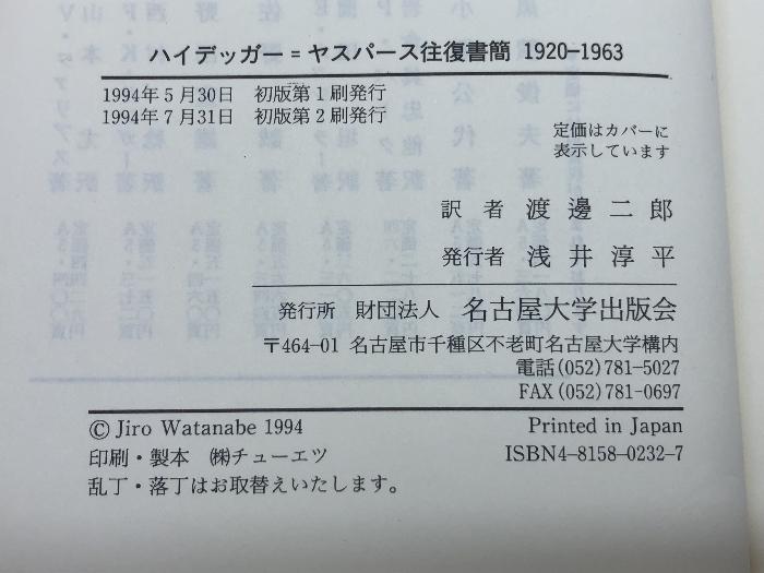 商品名:ハイデッガー=ヤスパース往復書簡: 1920-1963 名古屋大学出版会 W.ビーメル