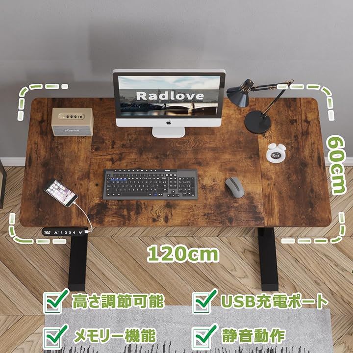 「商品仕様」*天板サイズ:約幅120CMx奥行60CM*天板は4分割 *本体重量:約21KG *耐荷重80KG *高さ調節範囲:69-115CM *材料:化粧合板、鋼鉄合金材料