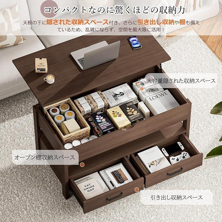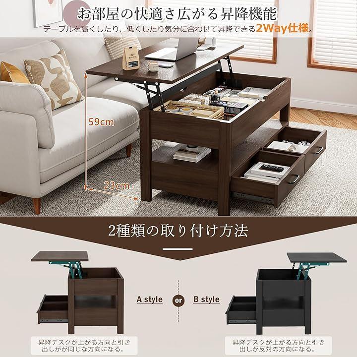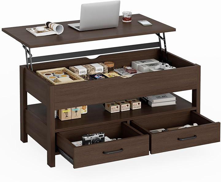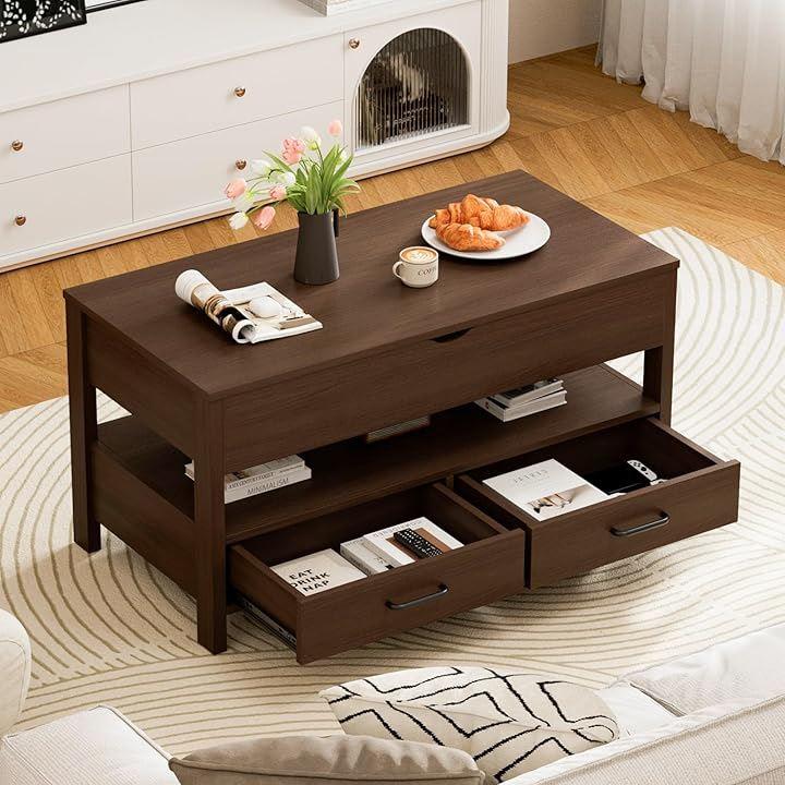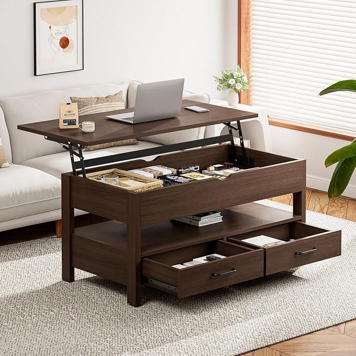 Height-adjustable wooden coffee table with drawer and storage. Large capacity storage. Perfect as a living room table or center table. Easy to open and close.