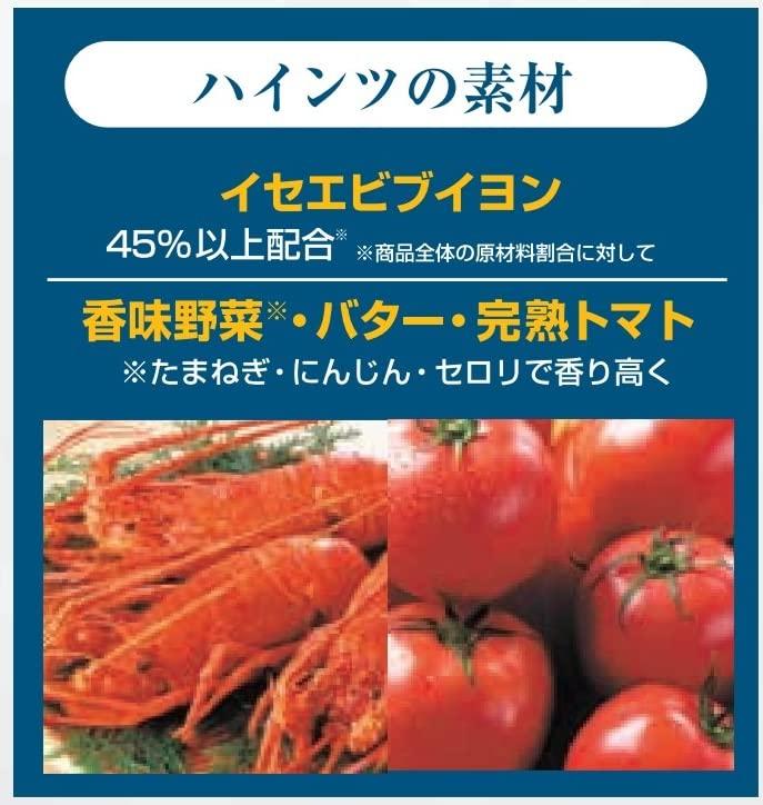 イセエビブイヨン(オーストラリア製造、国内製造)、トマトペースト、小麦粉、野菜(たまねぎ、にんじん、セロリ)、バター、とうもろこし油、全粉乳、水あめ、香辛料、(一部にえび・小麦・乳成分を含む)