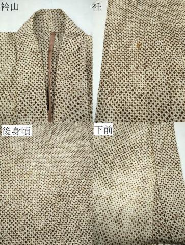 状態は接写画像のように衿山・衽・後身頃・下前に汚れがございますが