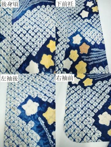 状態は接写画像のように後身頃・下前衽・左袖後・右袖前に薄いシミがございますが