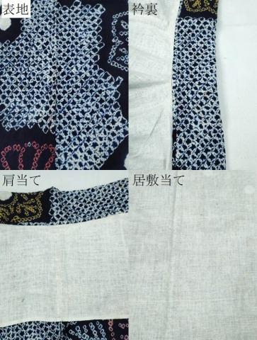 表地所々・衿裏・肩当て・居敷当てに薄いシミ、表地にヤケがございます。