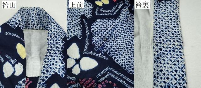 状態は接写画像のように衿山・上前・衿裏に薄い汚れがございますが