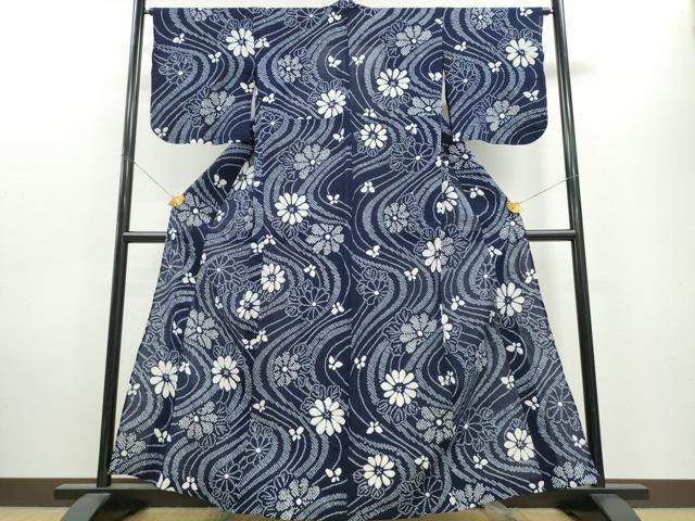 Heiwa-ya Kimono∴Summer Yukata, Arimatsu Narumi Shibori, Flowing Water and Chrysanthemum Design, Cotton, Excellent Quality, CAAW1000ng