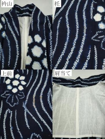 状態は接写画像のように衿山に薄い汚れ、衽・上前・肩当てに薄いシミがございますが