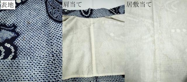 状態は接写画像のように表地所々・肩当て・居敷当てに薄いシミがございます。