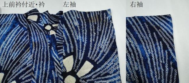状態は接写画像のように上前衿付近・衿・両袖に薄いシミがございますが