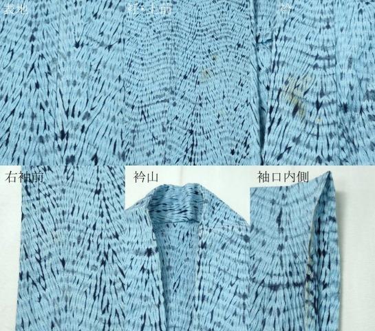 表地にヤケ、衽・上前・衿・右袖前・衿山・袖口内側に薄い汚れがございますが