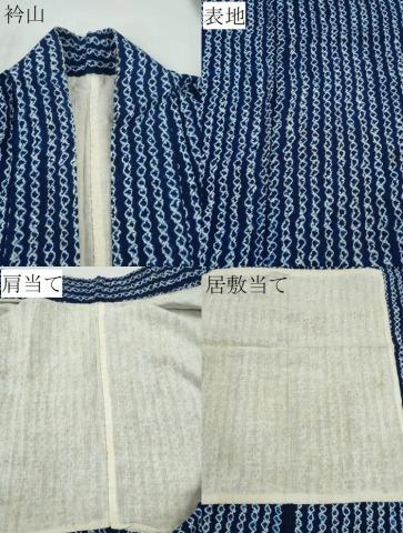 表地所々・肩当て・居敷当てに薄いシミ、衿山に薄い汚れがございますが