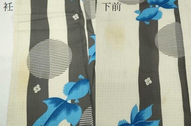 状態は接写画像のように衽・下前に薄いシミがございますが