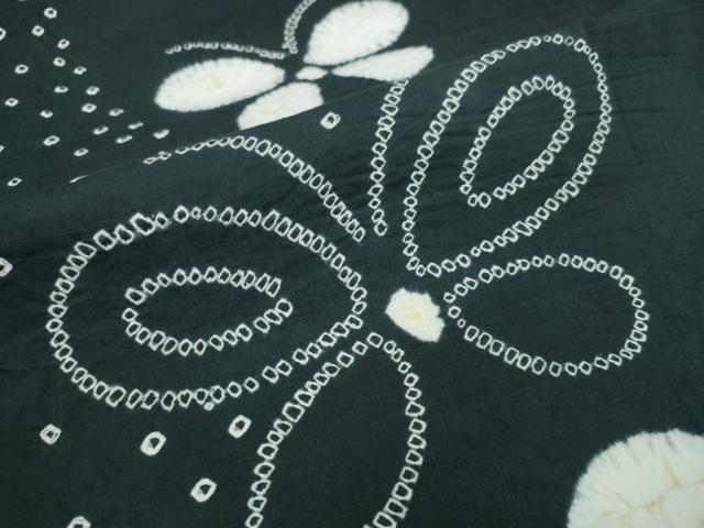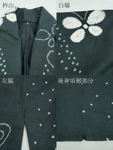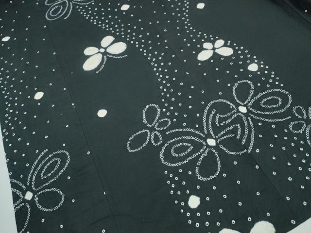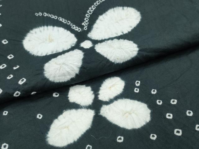 白場に絞り特有のシミ、左脇・後身頃裾部分に糸解けがございますが