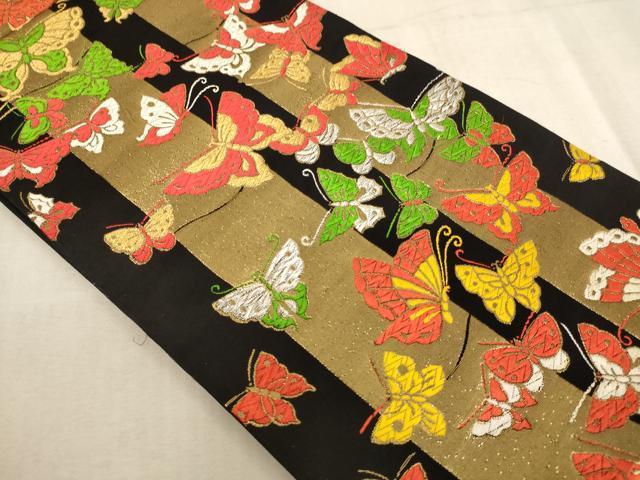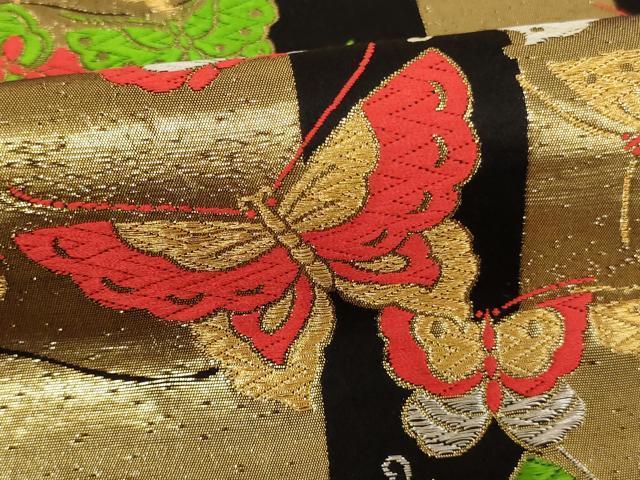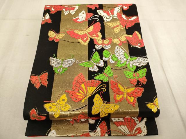 Heiwa-ya Kimono∵Children's Full-Length Pattern Obi, Karaori, Maicho Kanmichi, Black, Gold and Silver Thread, AABD1830ja