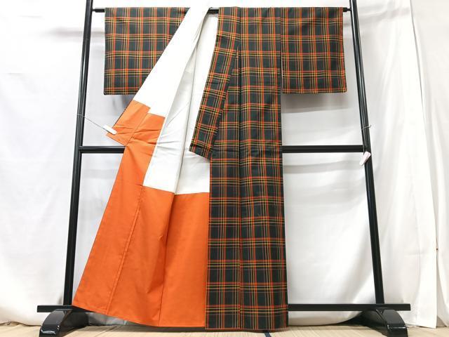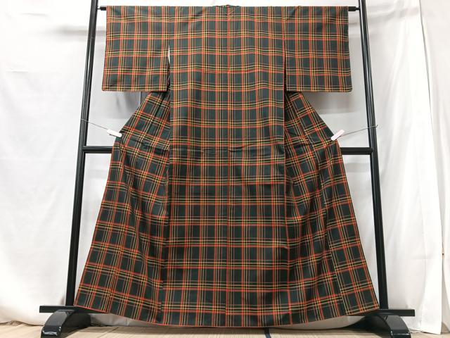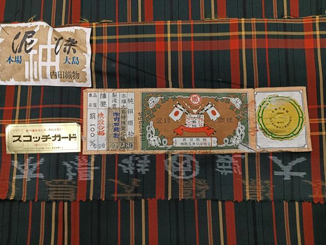 Heiwa-ya Kimono ■ Authentic Striped Oshima Tsumugi Mud-Dyed Plaid Silk by Uchida Orimono Co., Ltd. Comes with Certificate of Authenticity. Authentic, Pure Silk. CABB3020xe