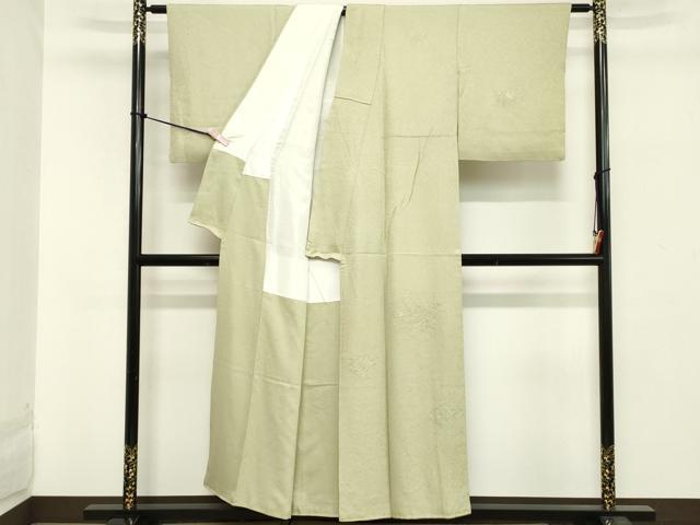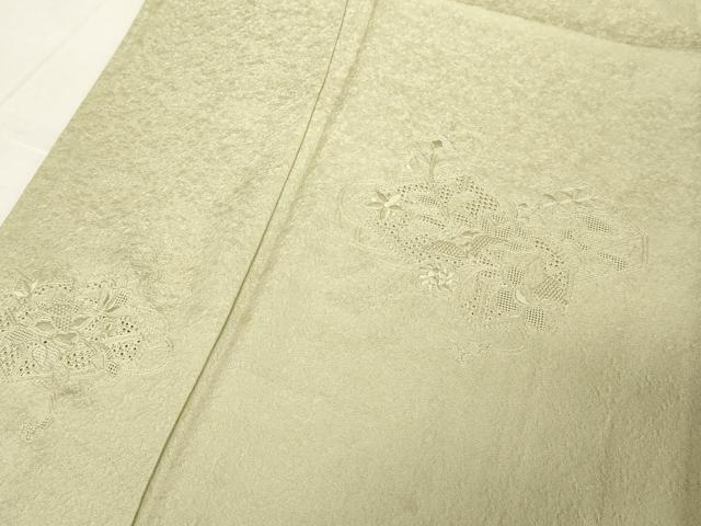 Heiwa-ya Kimono ■ Chinese Three Great Embroidery Styles: Sagara Embroidery, Fully Embroidered, Plain Eba Homongi Kimono with Floral Pattern, Willow-Green Back, Pure Silk, Excellent Item, DABA5492cd