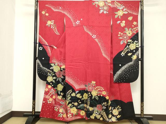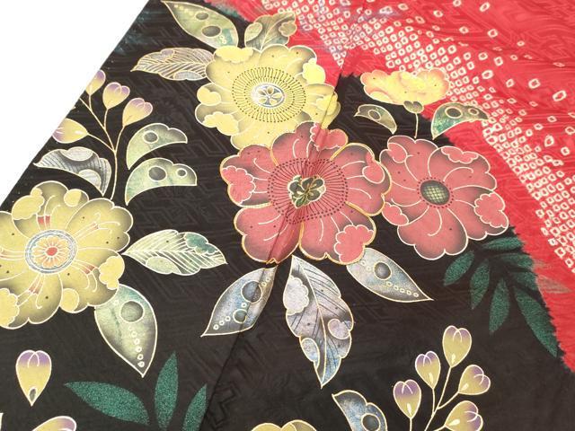 Heiwa-ya Kimono ■ Gorgeous furisode kimono, shibori (dyed) pattern, Tsujigahana (flower) pattern, gradation dyeing, gold and silver accents, pure silk, exquisite item, DABA5436cd