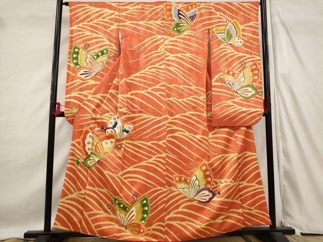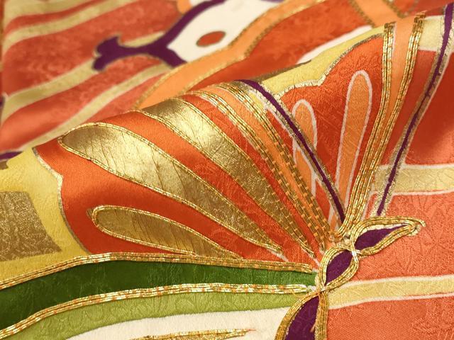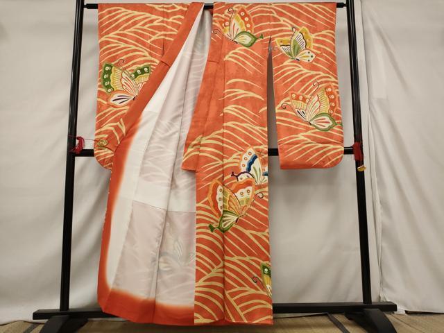 Heiwa-ya Kimono ■ Gorgeous Furisode Kimono with Koma Embroidery, Dancing Butterfly Design, Gold Accents, Pure Silk, Excellent Item AABD2173st