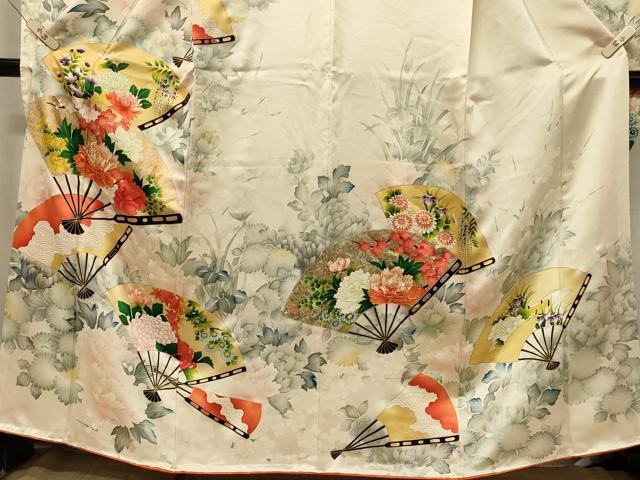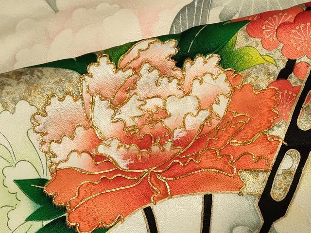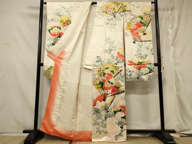 Heiwa-ya Kimono ■ Gorgeous Furisode Kimono with Koma Embroidery, Fan-Shaped Floral Design, Gradient Dye, Gold Accents, Pure Silk, Excellent Quality, CABA3030in