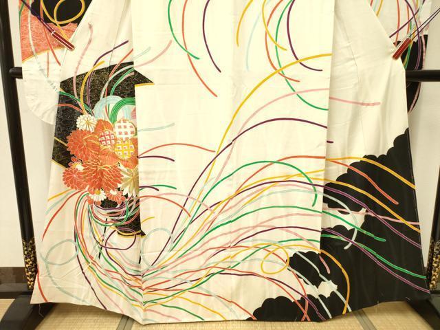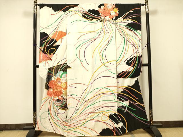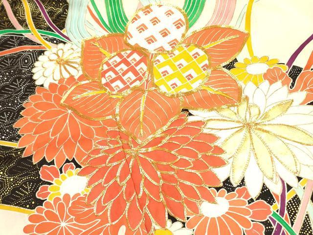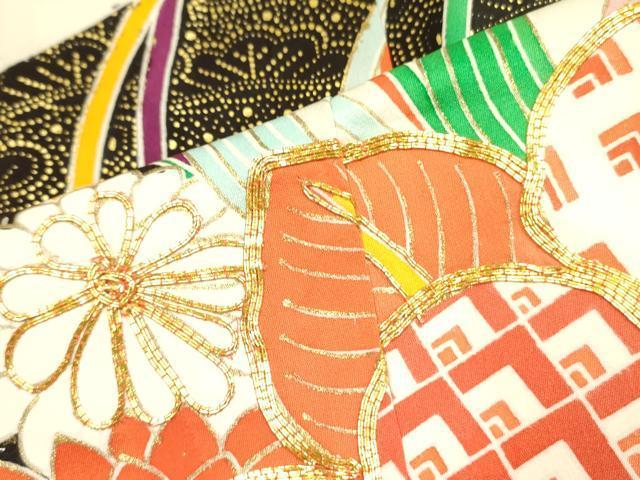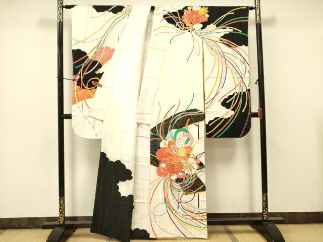 Heiwa-ya Kimono ■ Gorgeous Furisode Kimono with Koma Embroidery, Floral Design, Gold Accents, Pure Silk, Excellent Item, DAAZ2041op