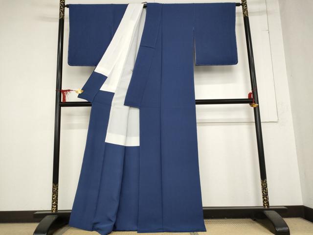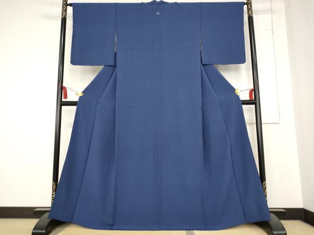 Heiwa-ya Kimono ■ High-quality plain kimono with crest design, navy blue, pure silk, excellent quality AABC8318st