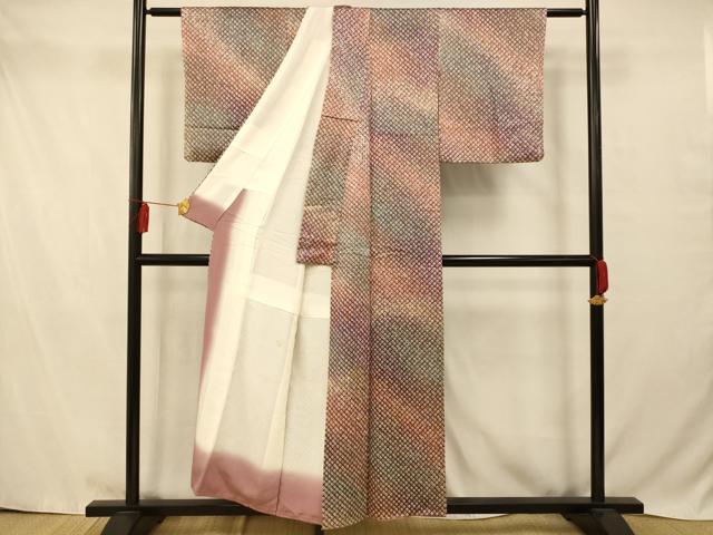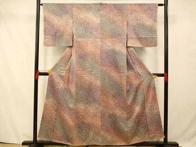 Heiwa-ya Kimono ■ Highly detailed all-shibori komon (small pattern) with a hazy twill pattern and gradation dyeing. Pure silk. Excellent quality. AABA9232fw