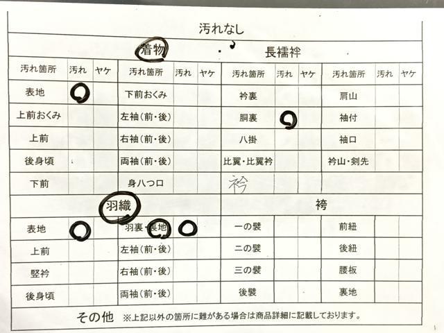 着物の状態をより分かりやすくお伝えするために、汚れチェックシートの英訳版を作成致しました。
