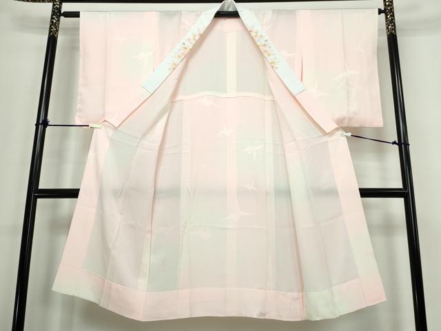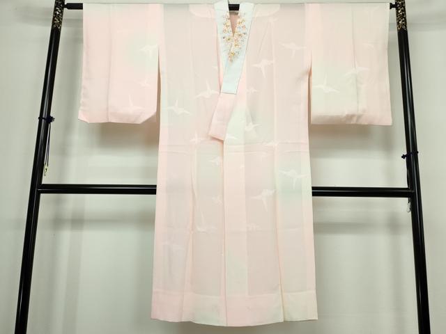 Heiwa-ya Kimono ■ Nagajuban (long under-kimono) - Double-stitched, with a crane pattern, gradation dyeing, and embroidered half-collar. Pure silk, excellent quality. DAAZ1384qa