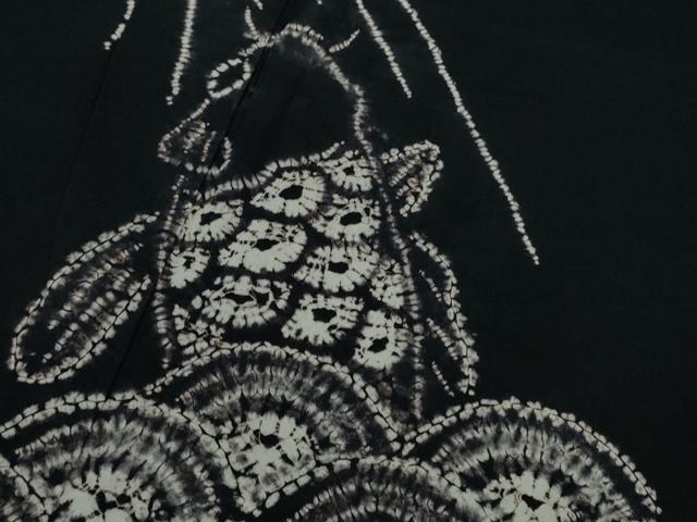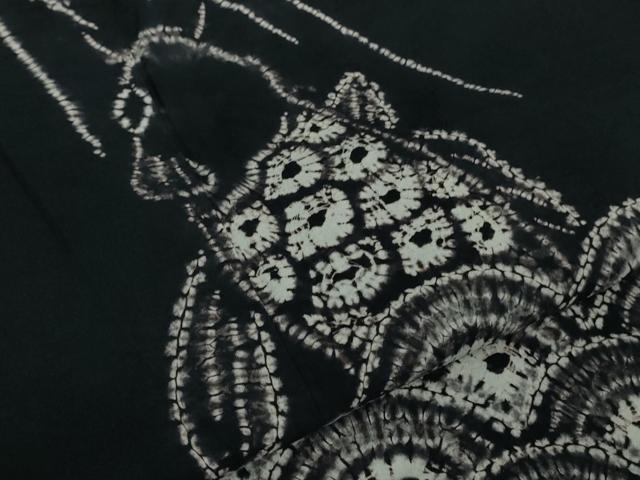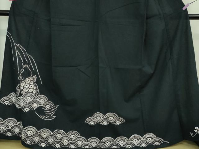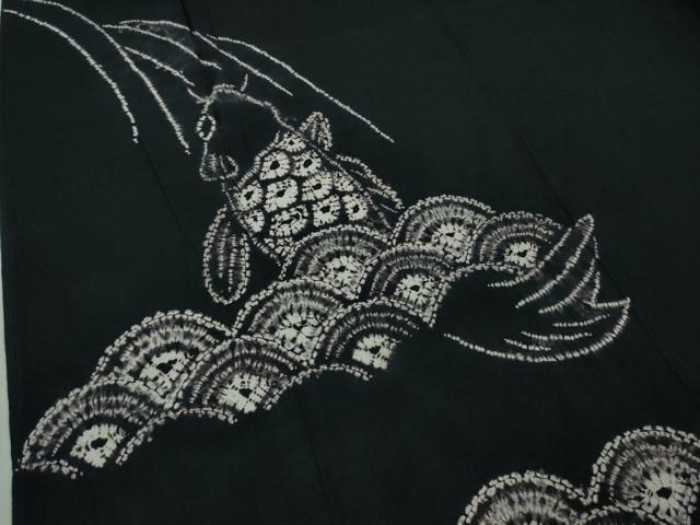 Heiwa-ya Kimono ■ Premium Summer Yukata, Arimatsu Narumi Shibori, Carp Climbing a Waterfall, Black Cotton, Excellent Condition, DZAB0884kh5